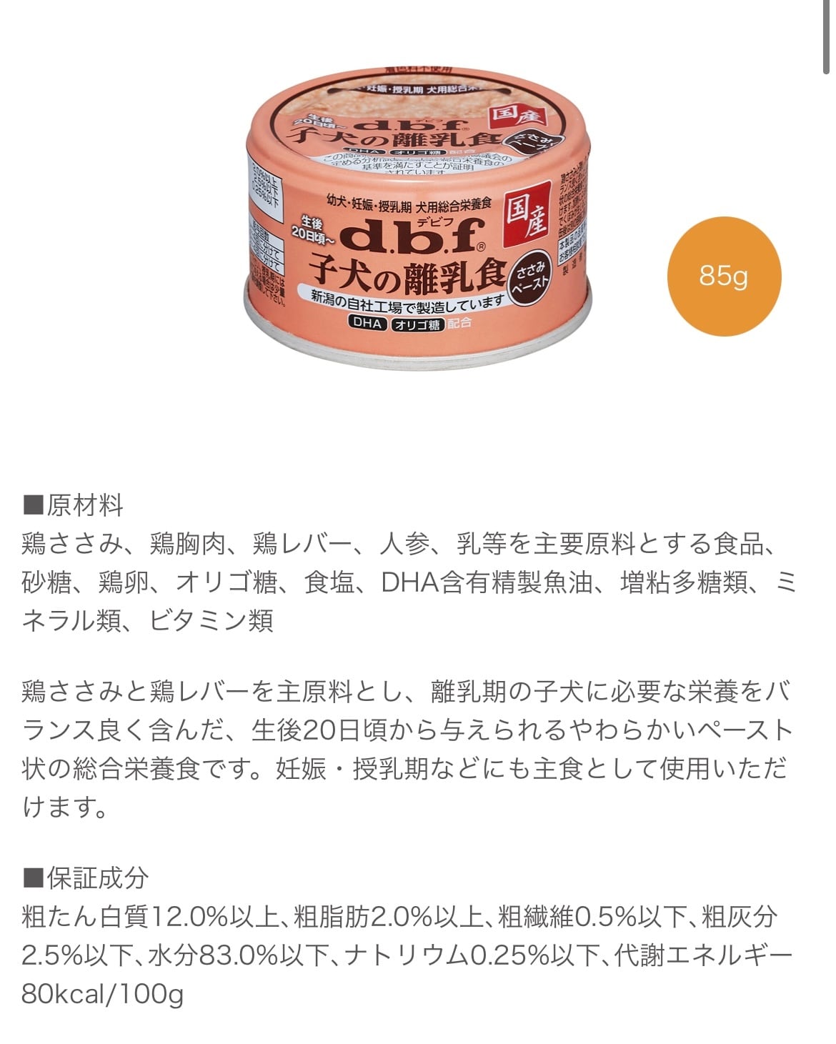 鶏ささみと鶏レバーを主原料とし、離乳期の子犬に必要な栄養をバランス良く含んだ、生後20日頃から与えられるやわらかいペースト状の総合栄養食です。妊娠・授乳期などにも主食として使用いただけます。